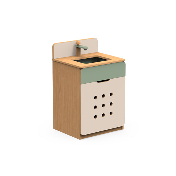 Équipé d’un robinet en bois de hêtre et d’un évier en polypropylène.